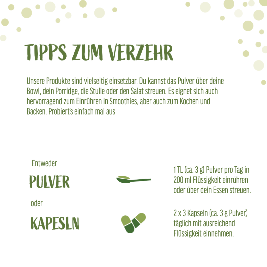 Unsere Kapseln bestehen aus Cellulose und sind somit vegan.
